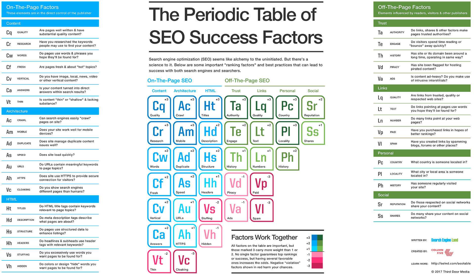 Si vous commencez en référencement naturel, voici le tableau périodique des éléments du SEO. C’est un excellent guide pour comprendre comment cela fonctionne.